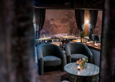 The VIP area features luxury couch seating designed for comfort and connection, allowing guests to relax while remaining fully engaged with the performance. The space is divided into two sections: